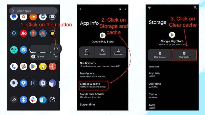 이 단계를 통해 'Google Play 인증 필요' 오류를 해결할 수 있습니다. 많은 앱이 다양한 항목을 메모리에 더 빠르게 로드하기 위해 캐시 데이터를 수집하는 경우가 있기 때문입니다. 하지만 이렇게 하면 OS가 너무 커져서 오류가 발생할 수 있습니다. 따라서 Google Play 스토어 캐시를 지우는 것이 좋습니다. Google Play 스토어 캐시를 지우려면 다음 단계를 따르세요.
