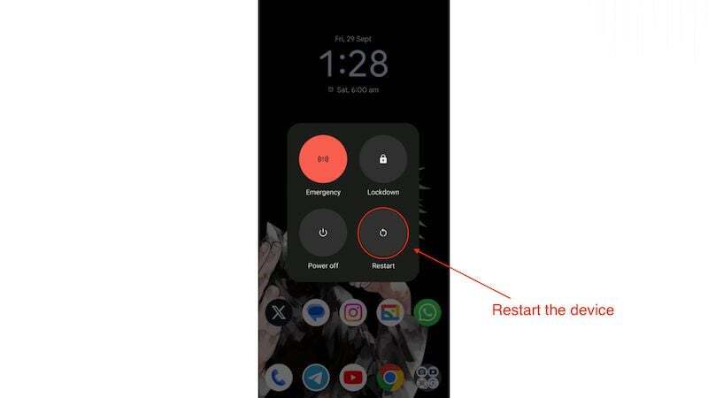인터넷 연결 부족이 'Google Play 인증 필요' 오류의 주요 원인이 아닌 경우 Android 기기를 다시 시작해야 합니다. 때로는 간단한 재부팅으로 많은 문제를 해결할 수 있습니다. 기기를 다시 시작하려면 다음 단계를 따르세요.