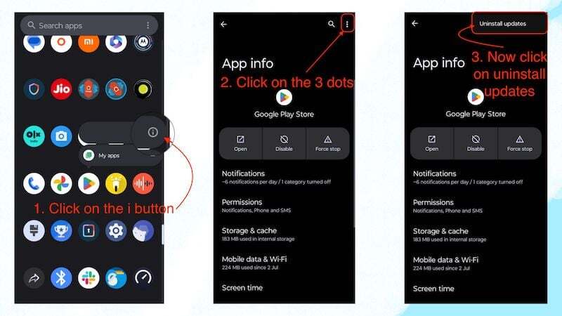 정기적으로 업데이트되는 또 다른 앱인 만큼, 구글 플레이 스토어의 잘못된 업데이트로 인해 이와 같은 작은 오류가 발생하는 경우가 있습니다. 이 경우, 이러한 문제를 해결하려면 앱의 이전 업데이트를 제거하는 것이 좋습니다.