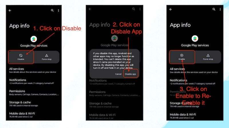 구글 플레이 서비스 프레임워크 비활성화 및 다시 활성화
