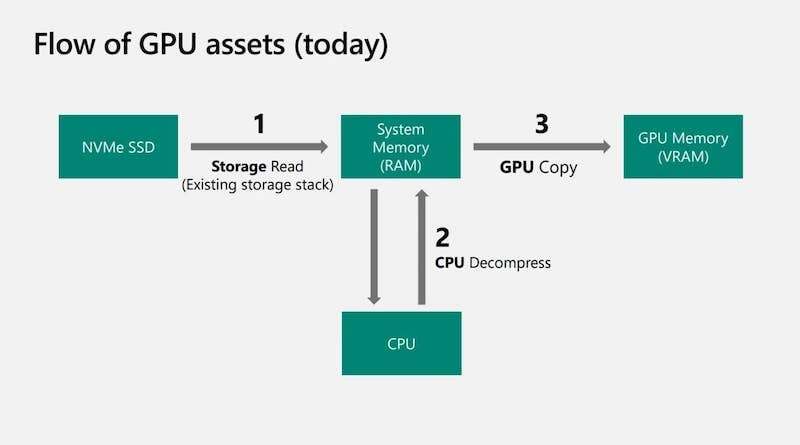 GPU는 데이터 압축 해제에 능숙하지만 어떤 종류의 데이터와 자산이 사용되는지 고려해야 합니다. 게임이 커짐에 따라 게임의 모든 자산이 보관 및 압축 형식으로 저장된다는 사실을 알아두면 좋습니다. 전통적으로 압축을 위해 CPU로 전송되지만 PC의 현재 버전 DirectStorage에서는 GPU가 그렇게 많은 양의 데이터를 압축 해제하는 것이 불가능합니다.