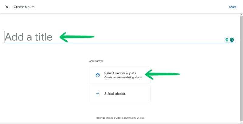 4단계: 그런 다음 앨범에 제목을 추가하고 사람 및 애완동물 선택 으로 이동하여 특정 사람들의 앨범을 공유하세요.