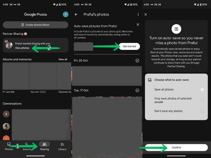 - 두 계정 모두에서 자동 저장 기능을 활성화하세요. 이는 Google 포토 > 공유에서 수행할 수 있습니다.