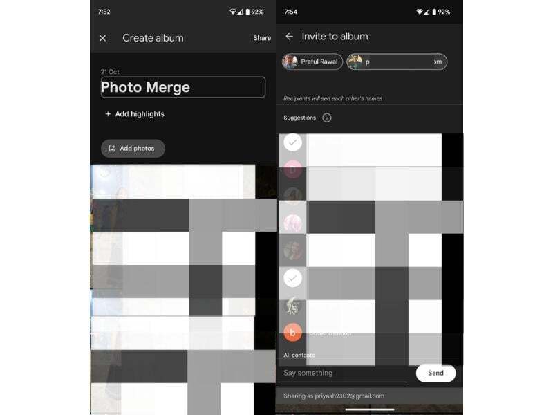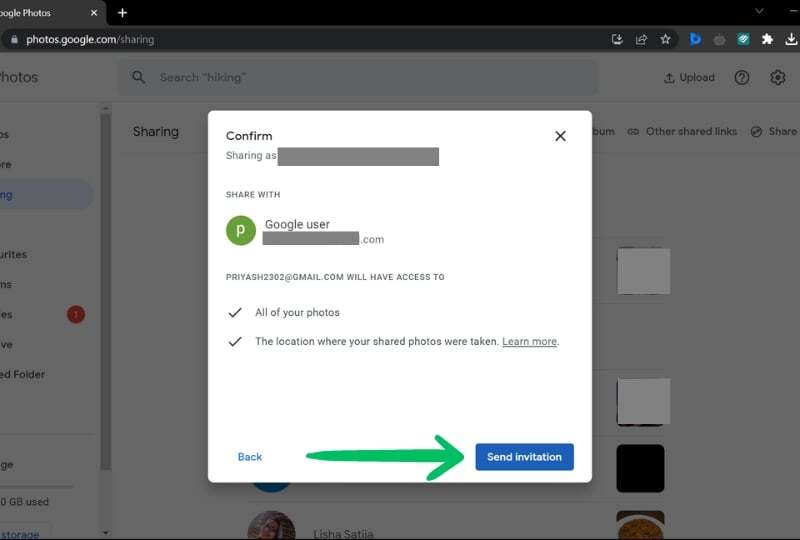 4단계: 그런 다음 사진을 공유하려는 Google 계정을 추가하세요. 마지막으로 초대장 보내기 버튼을 누르세요.