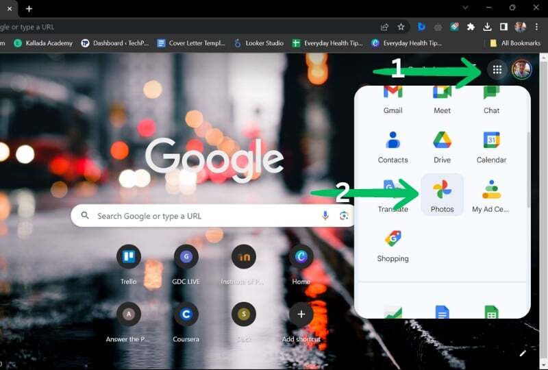 1단계: Chrome 브라우저를 실행합니다 Google Apps 로 이동하여 사진 으로 이동합니다