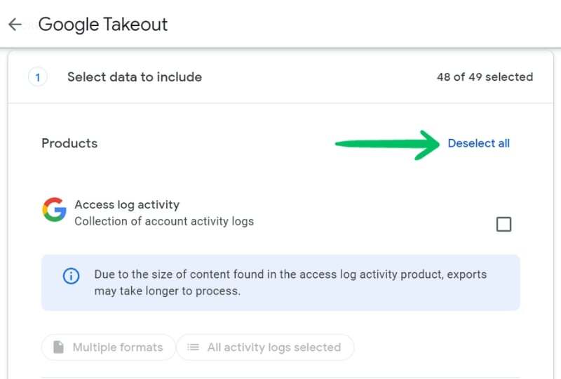 3단계: Google 포토를 선택 하고 모든 사진 앨범 포함을 클릭합니다 다운로드하지 않으려는 앨범을 선택 취소하세요.