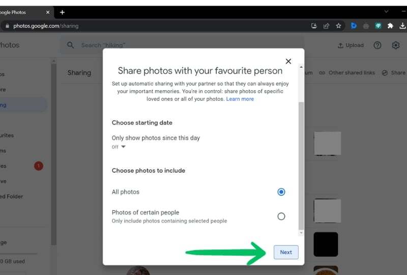 3단계: 이제 모든 사진을 공유할지 아니면 특정 사람들의 사진만 공유할지 선택할 수 있습니다. 완료되면 다음을 클릭하세요