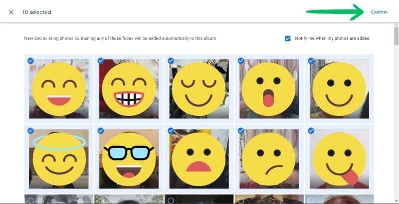 5단계: 공유하려는 앨범/얼굴을 선택합니다. 화면 오른쪽 상단에 있는 확인 버튼을 클릭하세요 그런 다음 앨범 제목을 추가하세요.