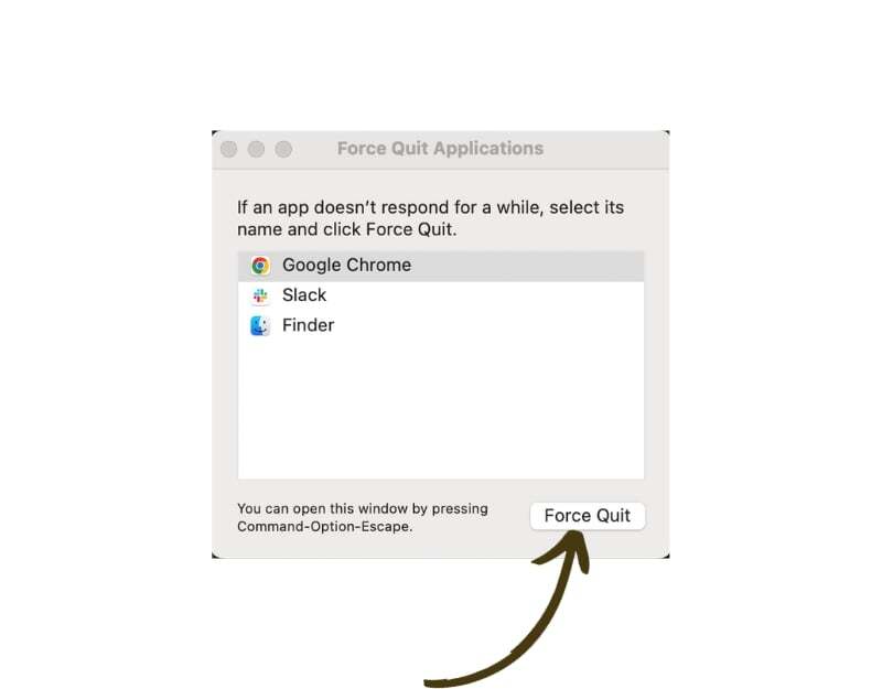 - 또는 키보드에서 Command + Option + Esc 키를 길게 누를 수도 있습니다 그러면 "강제 종료" 창이 열립니다.
