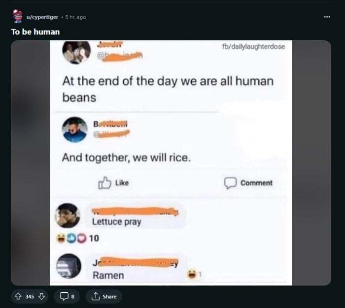 밈을 보고 웃고 싶다면 WholesomeMemes를 확인해보세요. 이 하위 레딧에서는 여러분을 웃게 만들 뿐만 아니라 긍정적인 내용을 전달하기 위해 고안된 인터넷 전체의 밈을 찾을 수 있습니다. 밈은 부정적인 것이 아니며 웃기 좋은 곳입니다. 주로 사진 형태로 콘텐츠를 찾을 수 있지만 너무 많아서 미디어를 스크롤하는 데 몇 시간을 보낼 수 있습니다.