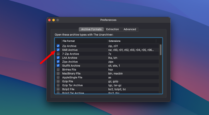Mac 스토어에서 Unarchiver 앱을 다운로드하세요 앱을 설치한 후 앱으로 달성하려는 파일 형식을 구성하십시오.