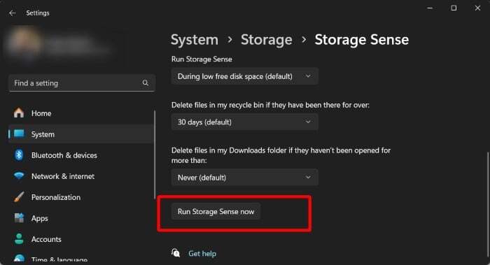 모든 것이 설정된 후 Run Storage Sense Now 버튼을 눌러 옵션이 작동하도록 하세요.
