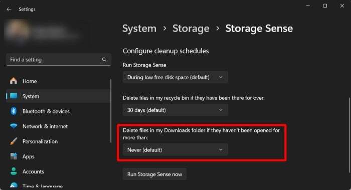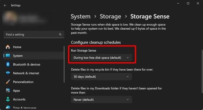 Storage Sense는 다양한 간격으로 Windows 11 PC에서 오래된 파일을 자동으로 삭제하는 옵션을 제공합니다. 저장 공간이 부족할 때 오래된 파일을 자동으로 삭제하는 등 다양한 일정을 선택할 수도 있습니다. 따라야 할 단계는 다음과 같습니다.