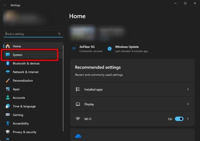 Win + I 키를 눌러 Windows 11 컴퓨터에서 설정 메뉴를 엽니다