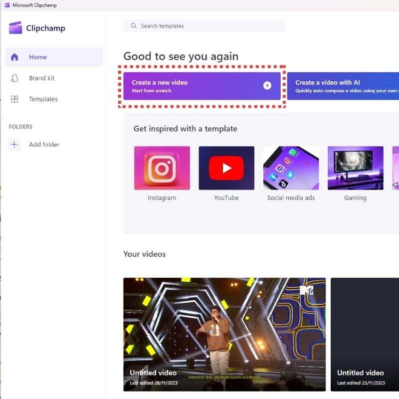 - Microsoft Clipchamp를 열고 새 동영상 편집을 시작하거나 기존 동영상을 엽니다.