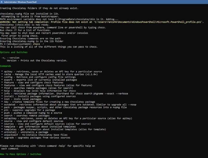 설치 과정을 따른 후 간단히 Chocolatey를 사용할 수 있습니다. 어떤 이유로든 문제가 발생하는 경우 Chocolatey 웹사이트 에서 다음 단계를 따르세요