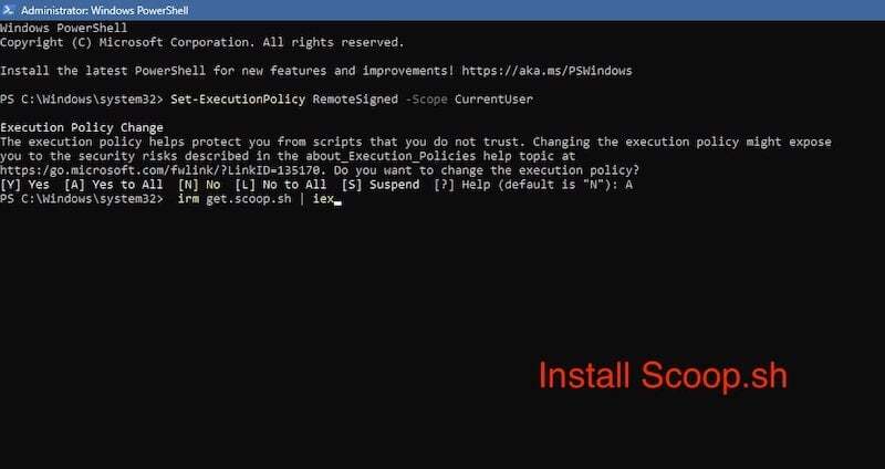 - 그런 다음 다음 명령을 입력하십시오. irm get.scoop.sh | 아이엑스