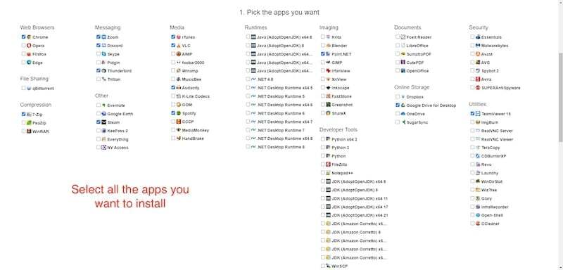 Ninite는 다양한 패키지와 함께 제공되는 사용하기 쉬운 GUI 기반 웹 도구입니다. 이 도구는 명령줄의 복잡성을 처리하고 싶지 않고 모든 패키지를 한 번에 설치하고 업데이트할 수 있는 GUI 기반 솔루션을 원하는 사람들을 위해 특별히 설계되었습니다. 이해하기 쉽고, 여러 컴퓨터에서 앱을 관리할 수 있는 Pro 버전도 있습니다.