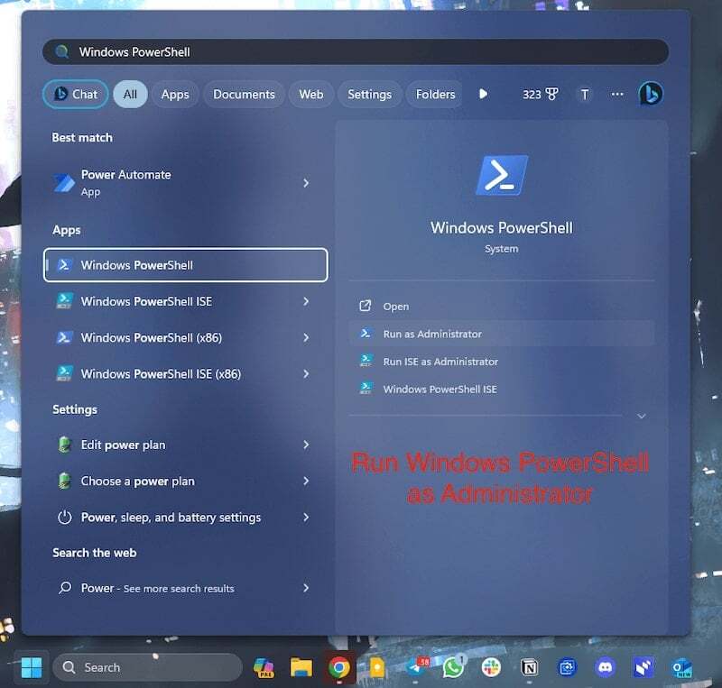 - Powershell을 시작하고 관리자 권한으로 실행하십시오.
