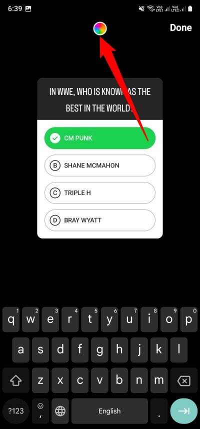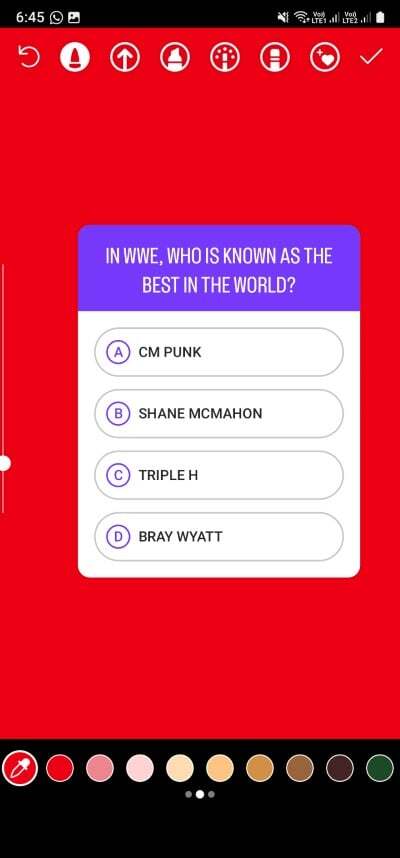 - 인스타그램 퀴즈의 색상을 변경하려면 퀴즈를 탭한 후 상단의 색상 선택기를 탭하세요