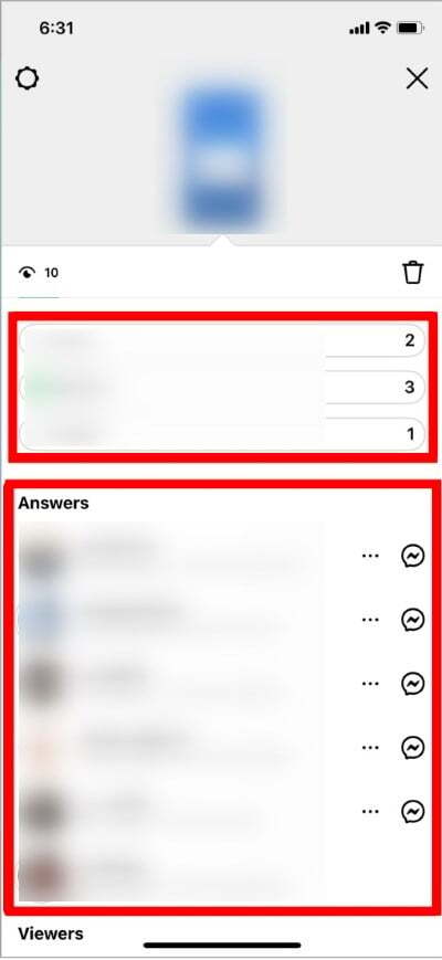 - Instagram 퀴즈 스토리를 위로 스와이프하여 결과를 확인하세요. 퀴즈를 본 사람의 전체 목록과 함께 옵션이 선택된 횟수를 확인할 수 있습니다.