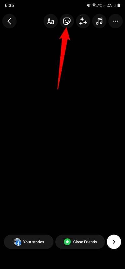 - 오른쪽 상단에 웃는 얼굴이 들어 있는 사각형 모양의 스티커 아이콘을 탭하세요