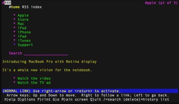 Lynx는 이 목록에 포함된 가장 빠르고 가벼운 브라우저입니다. 탁월한 속도와 최소한의 리소스 사용량은 그래픽, 이미지 또는 멀티미디어 콘텐츠를 지원하지 않고 텍스트 기반 브라우저로 작동한다는 한 가지 특성에 기인할 수 있습니다.