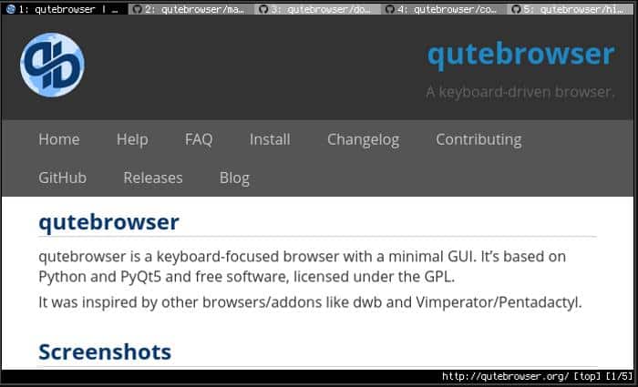 QuteBrowser 는 vim과 유사한 경험을 제공하는 키보드 기반 브라우저입니다. 이 오픈 소스 브라우저는 빠르고 가벼운 브라우징 경험을 제공하는 데 중점을 둔 최소한의 GUI를 자랑합니다.