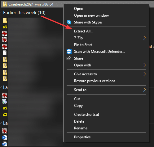 3. Cinebench R23 파일을 마우스 오른쪽 버튼으로 클릭하고 모두 추출을 선택합니다