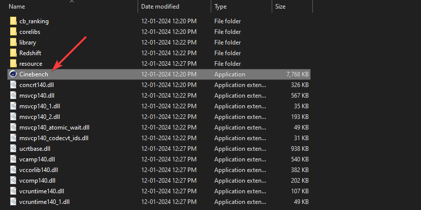 4. 그런 다음 추출된 폴더의 실행 파일을 통해 Cinebench를 실행합니다.
