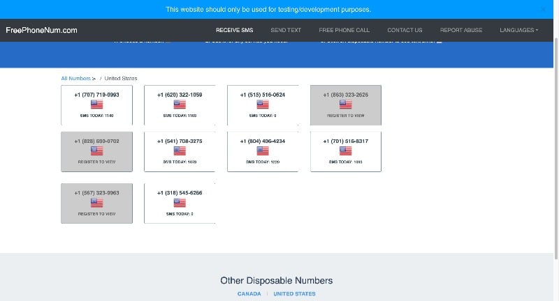 FreePhoneNum.com과 같이 일회용 전화번호를 얻을 수 있는 웹사이트가 많이 있습니다. 이 웹사이트는 무료로 버릴 수 있는 번호 목록을 제공합니다. 목록에서 원하는 번호를 선택할 수 있습니다. 번호를 선택하면 해당 번호를 클릭하면 텔레그램 인증 문자를 포함하여 해당 번호로 전송된 모든 문자 메시지를 볼 수 있습니다.