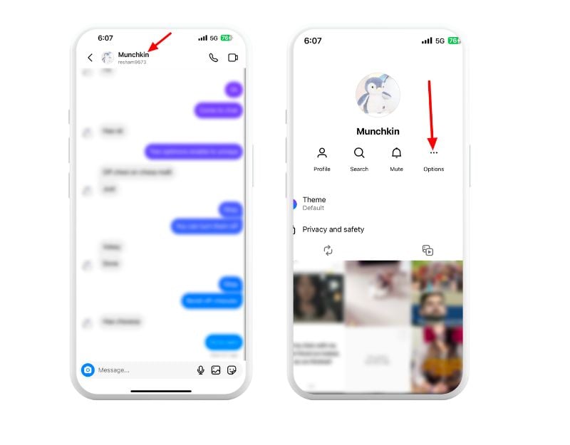 - 또는 채팅 화면에서 누군가를 제한할 수 있습니다. 메신저 아이콘을 탭하여 직접 메시지 에 액세스하세요 .