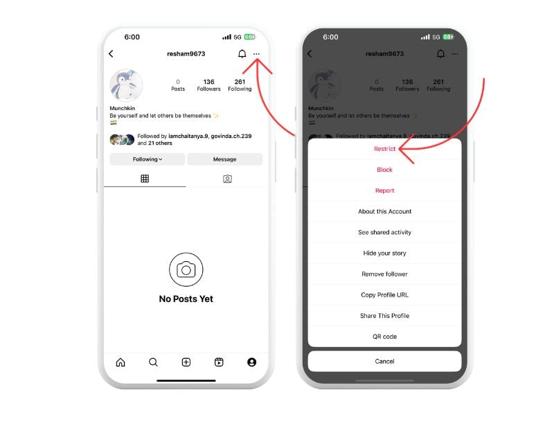 - Instagram 앱을 열고 제한하려는 프로필로 이동하세요.