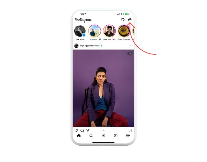 - 휴대폰에서 Instagram 앱을 열고 다이렉트 메시지를 보려면 메신저 아이콘을 탭하세요.