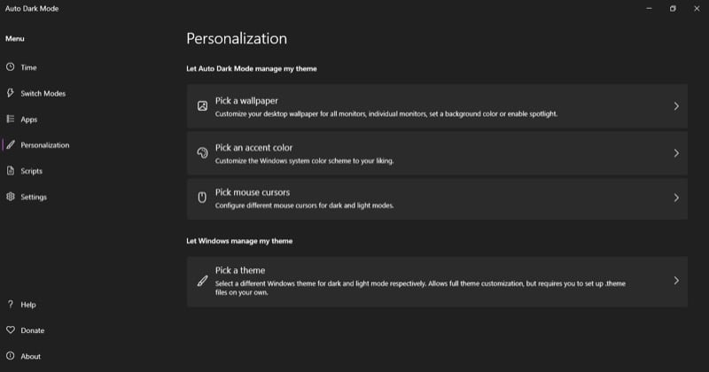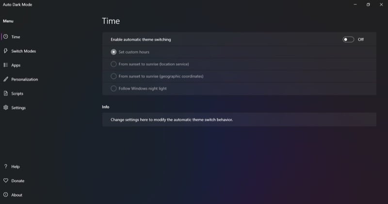 자동 다크 모드가 이를 수행하기 위해 제공하는 몇 가지 옵션은 다음과 같습니다.