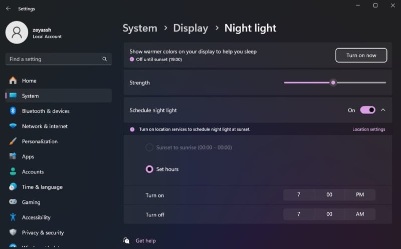 마지막으로 야간 조명 기능이 시작될 때 전환하도록 윈도우 PC에서 다크 모드를 예약할 수 있습니다. 야간 조명은 기본적으로 눈의 피로를 줄이고 수면의 질을 향상시키기 위해 낮이 진행됨에 따라 화면을 따뜻하게 전환하며, 자동 다크 모드 앱에는 다음에 대한 액세스가 필요합니다. 야간 조명 설정을 사용하여 컴퓨터의 어두운 모드를 켜고 꺼야 할 시기를 분석합니다.