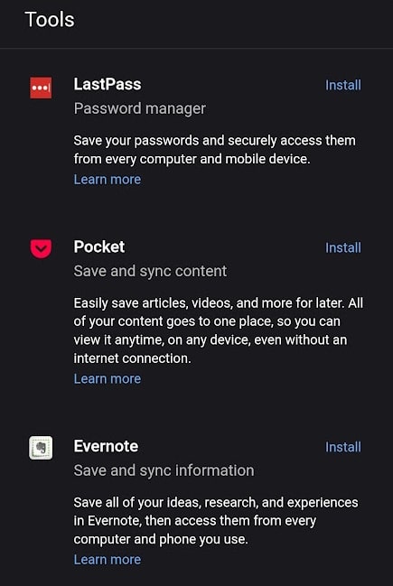 확장 기능을 지원하는 최고의 안드로이드 브라우저