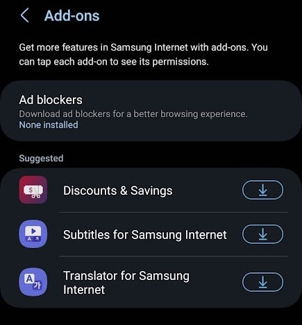 거대 기술 기업은 브라우저에 추가 기능을 포함하여 사용자의 관심을 끌 수 있는 다양한 기능을 추가했습니다. 그것을 사용하기 위해 삼성 장치가 필요하지 않습니다. 하지만 제한된 확장 범위를 탐색하려면 삼성 앱 스토어를 설치해야 합니다. 그리고 기본적으로 광고 차단기, 비밀 모드, 개인 정보 보호 장치, 비디오 지원 등과 같은 기능이 제공됩니다.