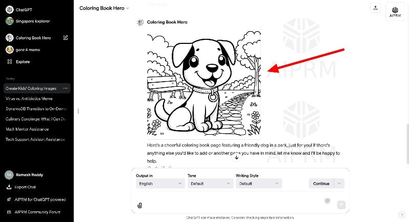 사진이나 전체 스토리를 업로드하여 색칠하기 책으로 만들 수도 있습니다. 또한, 이 GPT 모델로 생성된 컬러링 페이지는 상업적인 용도가 아닌 개인적인 용도로 사용되어야 합니다. 봇은 무료로 사용할 수 있습니다. 각 이미지 오른쪽 상단의 다운로드 버튼을 클릭하시면 이미지를 다운로드 받으실 수 있습니다. 이 봇에서 생성된 이미지를 인쇄하고, 개인 색칠 공부 책을 만들고, 색칠을 좋아하는 사람에게 선물로 줄 수 있습니다.