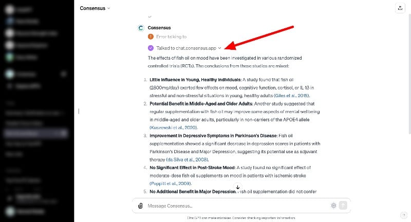 봇은 합의 데이터베이스를 검색하고, 귀하의 쿼리와 일치하는 논문을 찾아 요약을 제공합니다. 더 많은 질문을 할 수 있고, 새 데이터를 검색하여 대화를 계속할 수 있습니다. 테스트 당시 봇은 데이터를 검색할 때 몇 차례 오류를 표시했습니다. 그러나 간단한 ChatGPT 문제 해결 기술을 사용하여 문제를 해결할 수 있습니다. 맞춤 GPT 도구는 무료로 사용할 수 있습니다. '탐색' 탭을 통해 봇에 액세스할 수 있습니다.