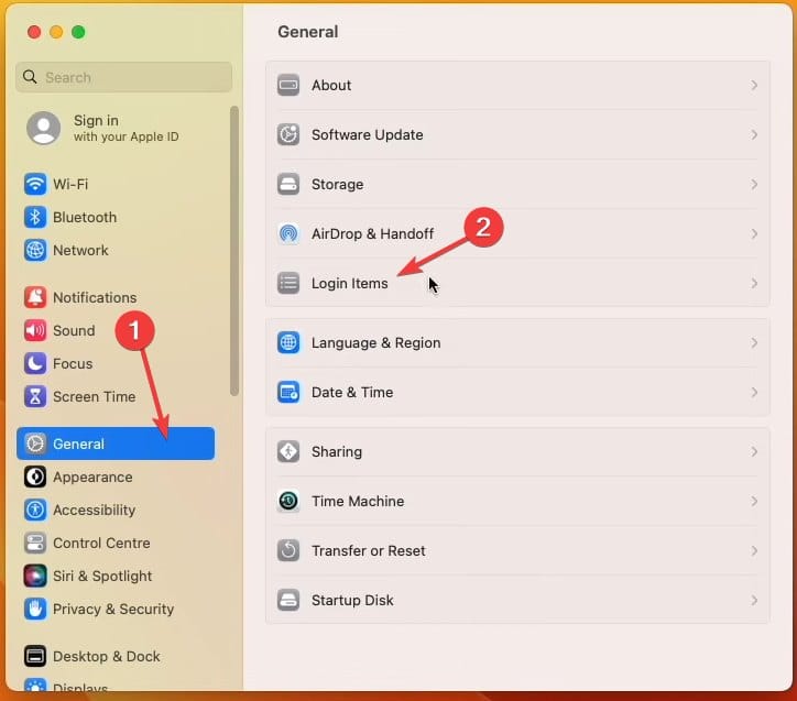 2. 그런 다음 일반 섹션 에서 로그인 항목 으로 이동합니다
