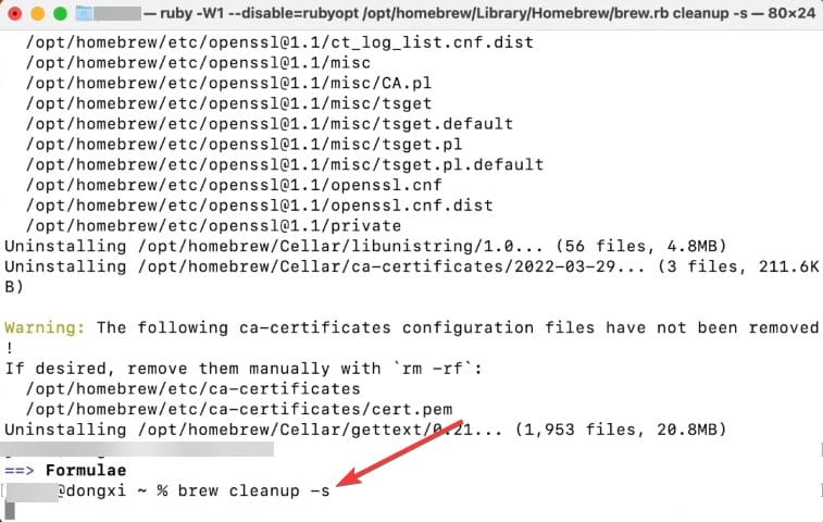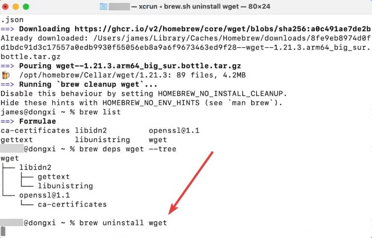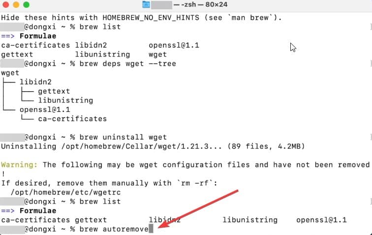 이것이 Homebrew로 패키지를 제거하는 방법입니다. 제거 명령을 사용하여 제거 하고 프로세스를 완료할 수 있습니다.
