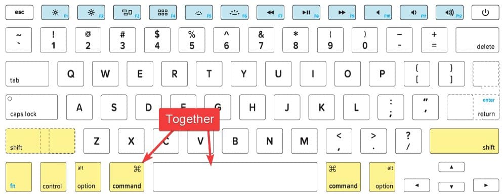 1. Command +를 눌러 Spacebar Spotlight 검색을 엽니다.