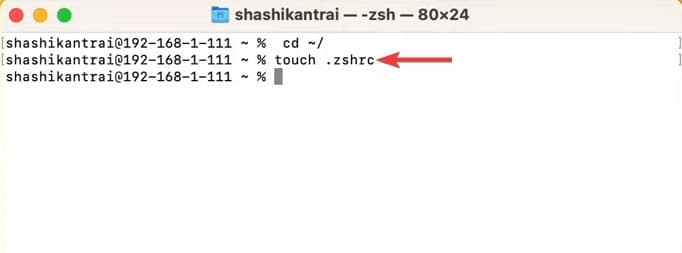 .zshrc 파일이 생성되지 않았거나 특정 구성이 누락된 경우 Zsh에서 명령을 찾을 수 없음 오류가 발생할 수 있습니다. 다른 명령을 입력하기 전에 Zsh 프로필을 만드는 방법은 다음과 같습니다.