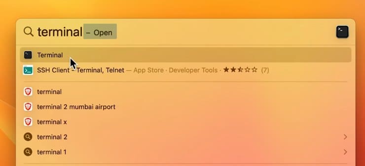2. 검색 후 터미널 로 향합니다 .