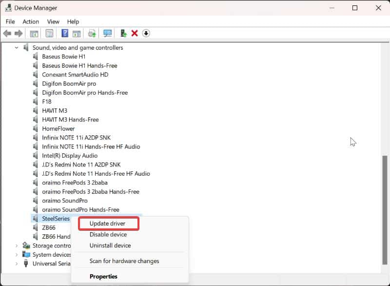 소나의 사운드 문제는 드라이버 문제로 인해 발생할 수 있습니다. 따라서 아래 단계에 따라 컴퓨터의 오디오 드라이버를 업데이트하십시오.
