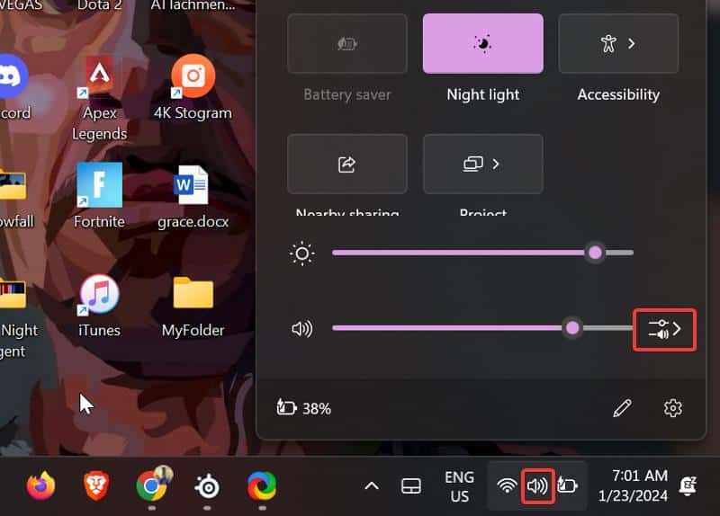 1. 작업 표시줄에서 볼륨 아이콘을 클릭합니다.