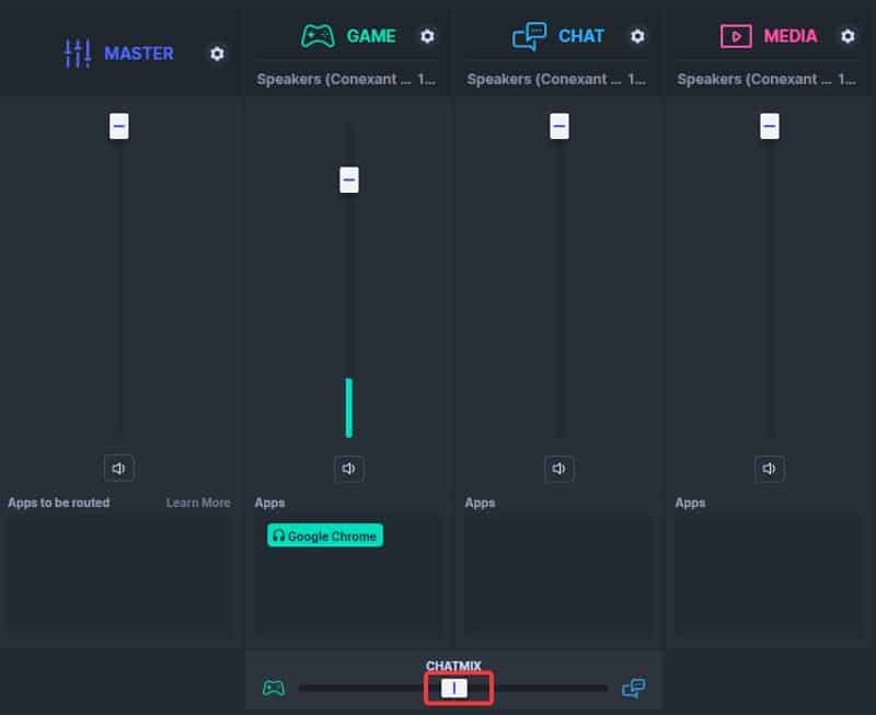 또한 ChatMix 볼륨 조절 막대는 게임과 채팅 앱 간의 사운드 균형을 맞추는 데 중요한 역할을 하므로 주의하세요. 예를 들어 게임 앱의 경우 이 슬라이더를 맨 끝으로 조정하면 게임에서는 소리가 나지 않고 채팅 앱에서는 오디오만 나올 수 있습니다.