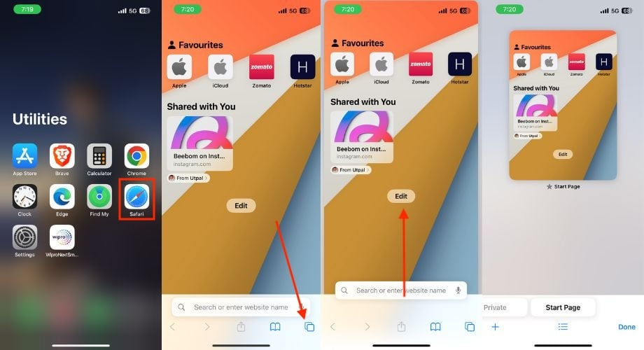 iPhone의 Microsoft Edge에서 시크릿 모드를 사용하려면 아래 단계를 따르세요.