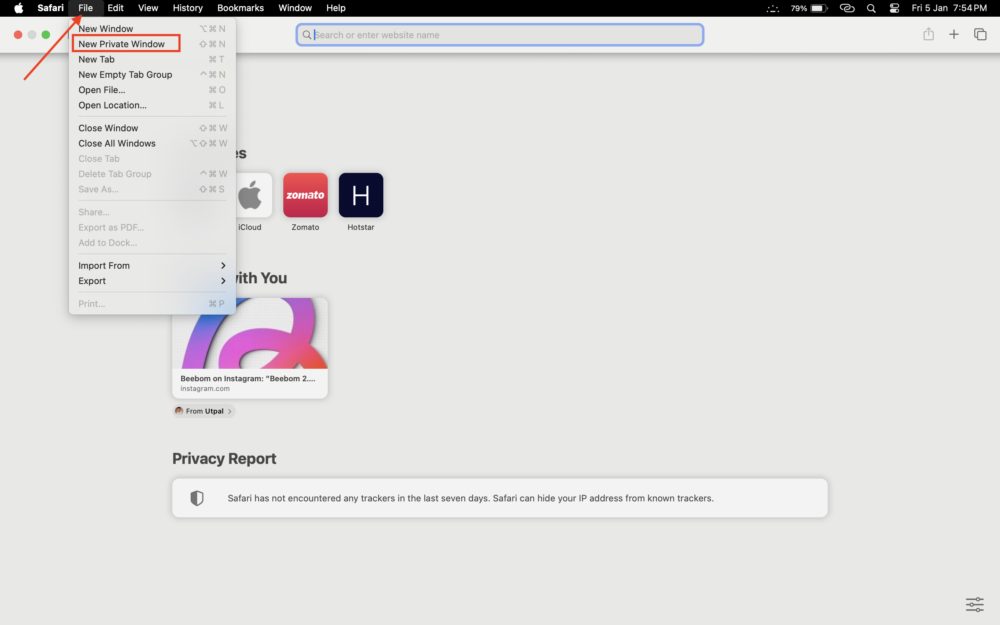 iPhone 및 iPad와 유사하게 Mac의 Safari에서 시크릿 모드에 액세스하는 것은 비교적 간단합니다. Mac에서 활용할 수 있는 또 다른 장점은 키보드 단축키를 사용하여 한 번의 키 입력으로 시크릿 모드에 액세스할 수 있다는 것입니다. 이렇게 하려면 아래 단계를 따르세요.